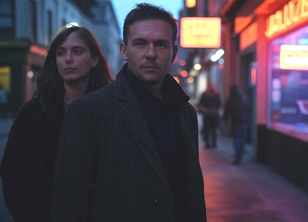 A man wanders his last night through glowing streets, shadowed by a woman who carries their youth. Amid city lights, buried feelings flicker—a tender waltz of nostalgia and quiet ache. A fleeting farewell to time slipped away and bonds left undone.
